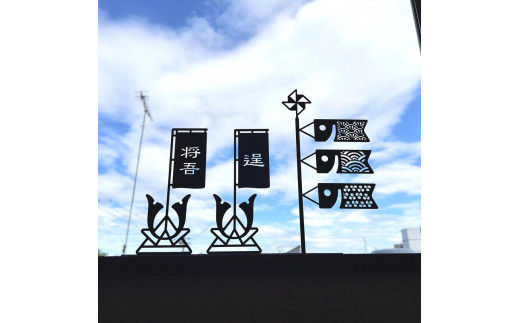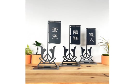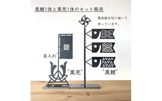 - 鯉のぼり【黒鯉】と名入れ兜【黒兜】のセット 兜飾り 名入れ旗 黒皮鉄 端午の節句 五月人形 こどもの日 名入れ 出産祝い ギフト