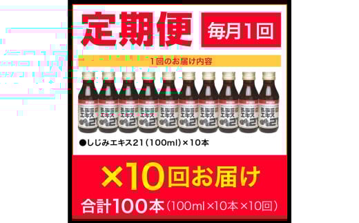 - 【10ヶ月連続】 しじみ シジミエキス21 100ml×10本(十三湖産ヤマトシジミ使用の シジミエキス 配合) 定期便