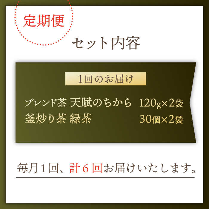 【ふるさと納税】【全6回定期便】【当茶園自慢のお茶セット】 ブレンド茶 「天賦のちから」・ 釜炒り茶 緑茶 ティーバッグ (120g+30個入)×2/回【上ノ原製茶園】 [QAO035] 緑茶 ティーバッグ お茶 ティーパック 日本茶 茶葉 釜炒り茶 煎茶 番茶 贈り物 ギフト プレゼント