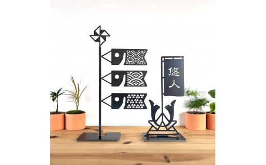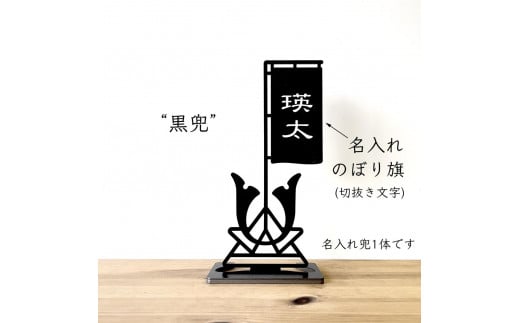 - 【黒兜】 黒い鉄の兜と名入れのぼり旗 黒皮鉄 端午の節句 五月人形 こどもの日 名入れ 出産祝い ギフト
