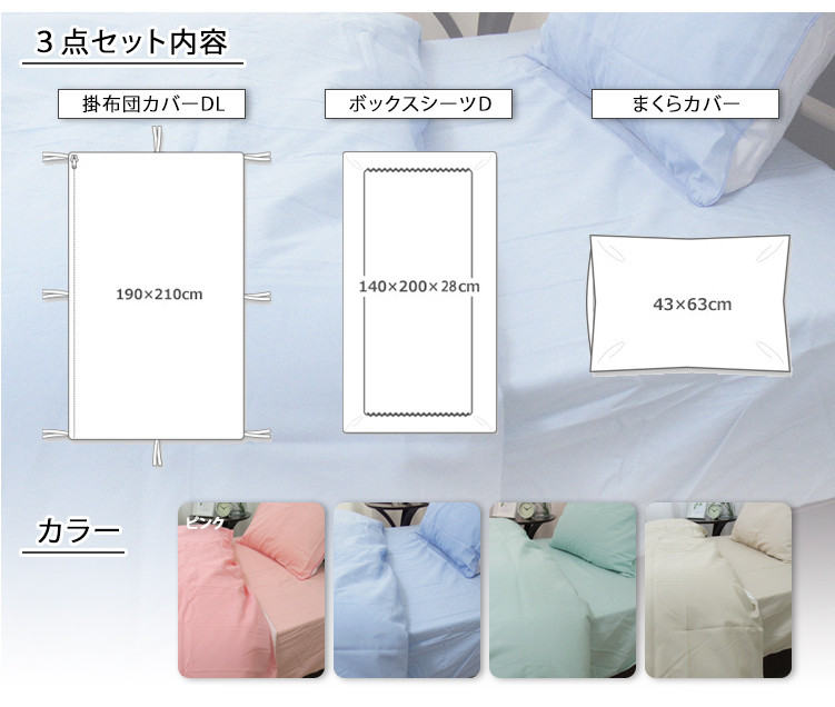 [ダブル] 日本製 綿100% ふとんカバー掛・敷・枕3点セット 無地 ブルー C0-D-BL [1792]