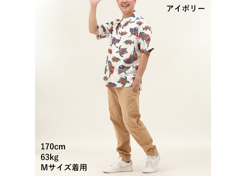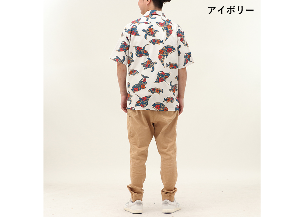 - 【かりゆしウェア】メンズ ちゅらさんジンベエザメLサイズ×アイボリー