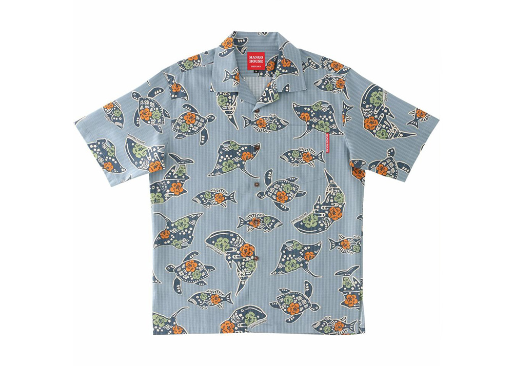 【かりゆしウェア】メンズ ちゅらさんジンベエザメMサイズ×ブルーグレー