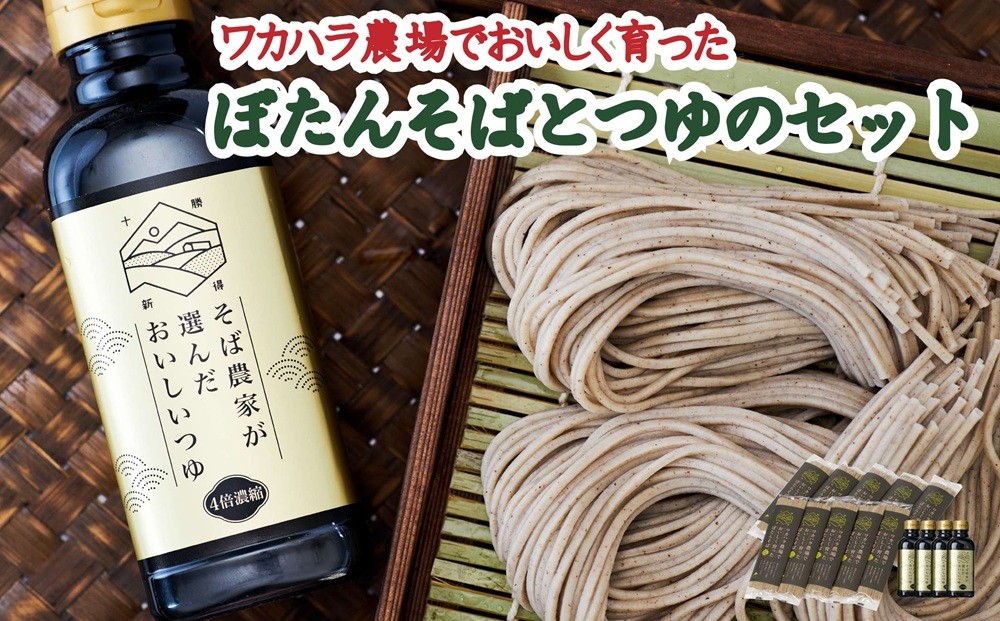 L-3502 ワカハラ農場でおいしく育ったぼたん蕎麦《太麺》10束(200g)×つゆ4本