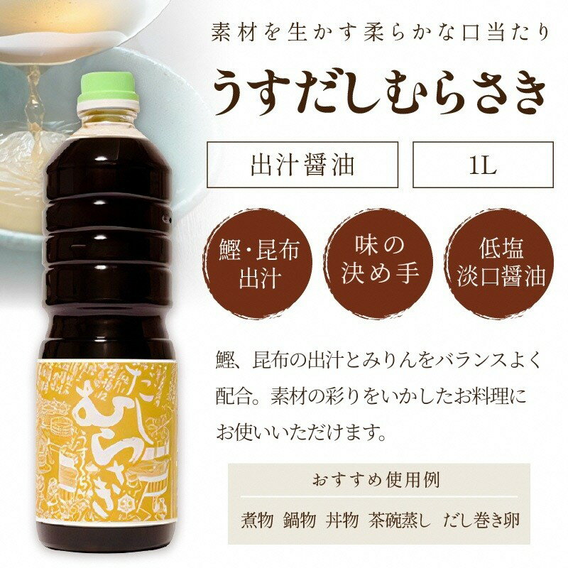 - 【ふるさと納税】高評価★5.0 高レビュー★ 淡口だし醤油「うすだしむらさき」 (うすだしむらさき1リットル×3) 醤油 だし だし醤油 淡口 京都 京丹後 ふるさと納税 調味料