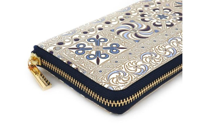 - 【文庫屋大関】 大容量 ぐるっとファスナーの長財布 錦紗<紫>【皮革工芸品】[№5619-0851]
