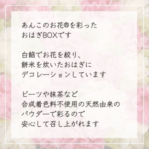 - 【菊翠謹製】あんこのお花 おはぎボックス | 白餡のお花 おはぎ デコレーション 可愛い 天然由来 合成着色料不使用 安心 贈答 お土産品 おすすめ