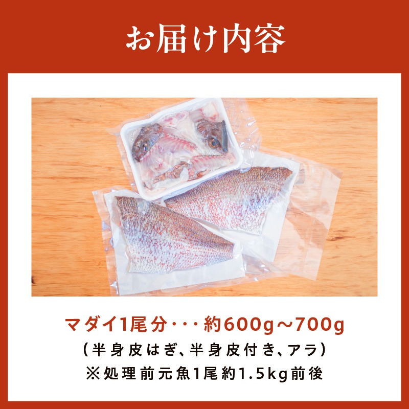 マダイ(半身皮はぎ、半身皮付き、アラ)1尾分 N015-YA762