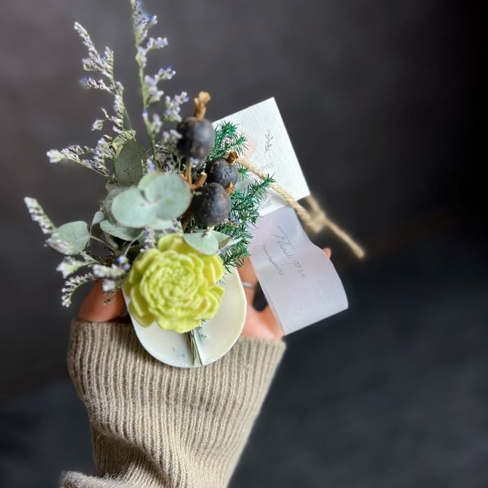 - ドライフラワーアレンジメント【スイーツみたいなワックスサシェ】森林浴の香り 2点セット / かわいい 癒し 春の柚 0886