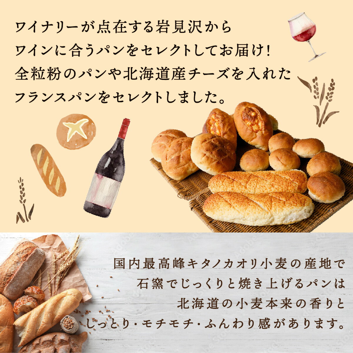 - 【ふるさと納税】パン 全粒粉 ブールパン チーズパン 詰め合わせ 14個 セット 国産小麦 北海道産小麦粉 石窯パン ワイン チーズ カンスケ 北海道 ふるさと納税 岩見沢 岩見沢市 【19103】
