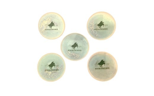 - No.2930 大堀相馬焼 近徳 京月窯「豆皿5枚セット ピアノと鍵盤のイラスト入り」