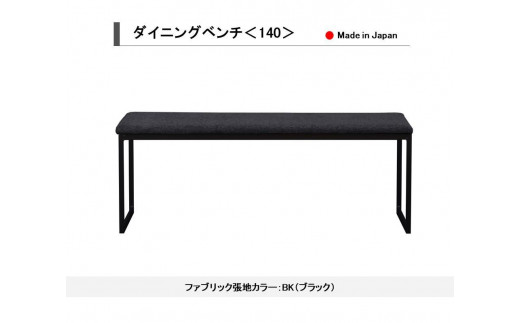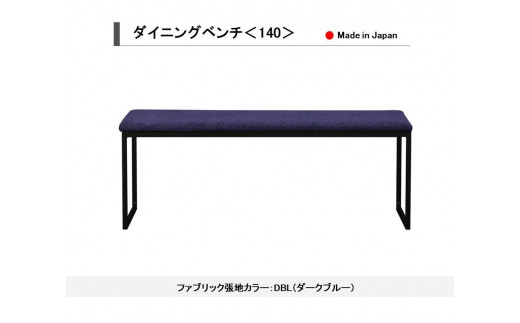 - 【開梱設置込み】ダイニングベンチ<140> BK ブラック DBL ダークブルー スチール脚 ファブリック ベンチ 免疫家具 国産 家具 大川【カラー:ダークブルー・ブラックからお選びください】