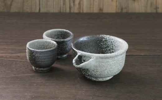 - 【萬古焼(ばんこやき)】灰釉掛分 酒器セット スズ木【お酒 酒 酒器 盃 晩酌 キッチン雑貨 三重県 四日市市】
