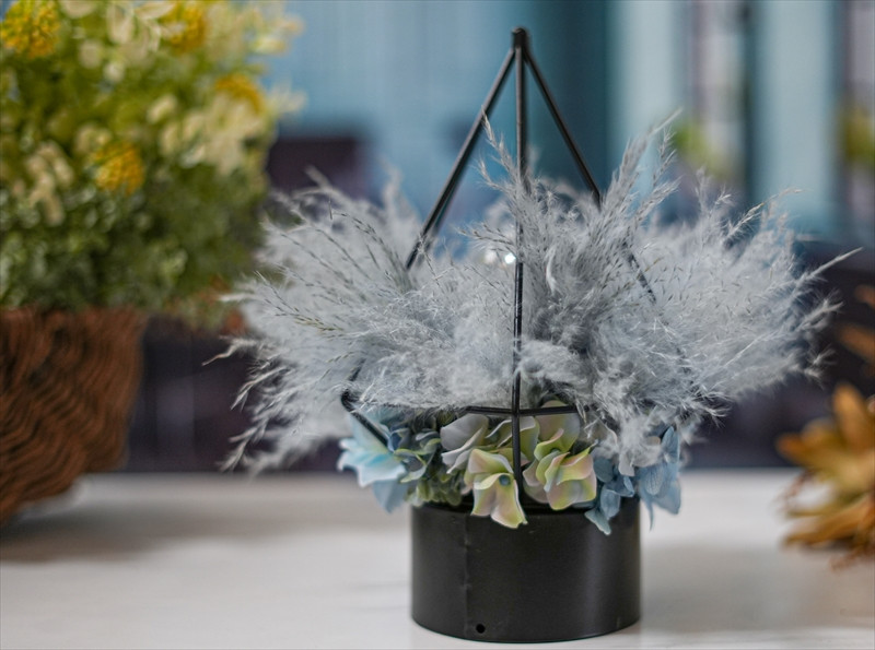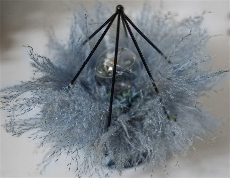 - ドライフラワーのおしゃれなインテリアランプ(ブルー)デザイナーの手作り一点モノ【1378902】