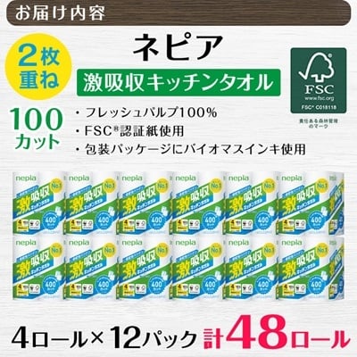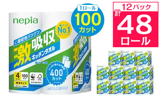- ネピア 激吸収 キッチンタオル 4ロール 2枚重ね 100カット ( 12パック ) _ 送料無料 キッチンペーパー 日用品 生活用品 まとめ買い ペーパータオル キッチン用品 厚手 【1209619】