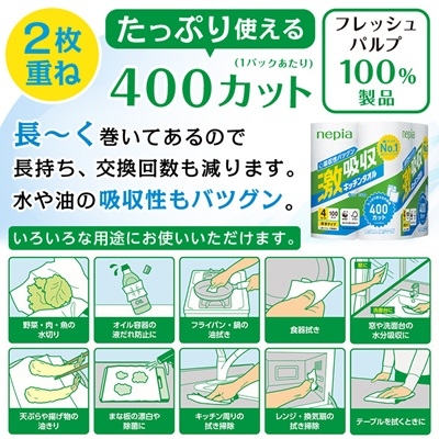 ネピア 激吸収 キッチンタオル 4ロール 2枚重ね 100カット ( 12パック ) _ 送料無料 キッチンペーパー 日用品 生活用品 まとめ買い ペーパータオル キッチン用品 厚手 【1209619】