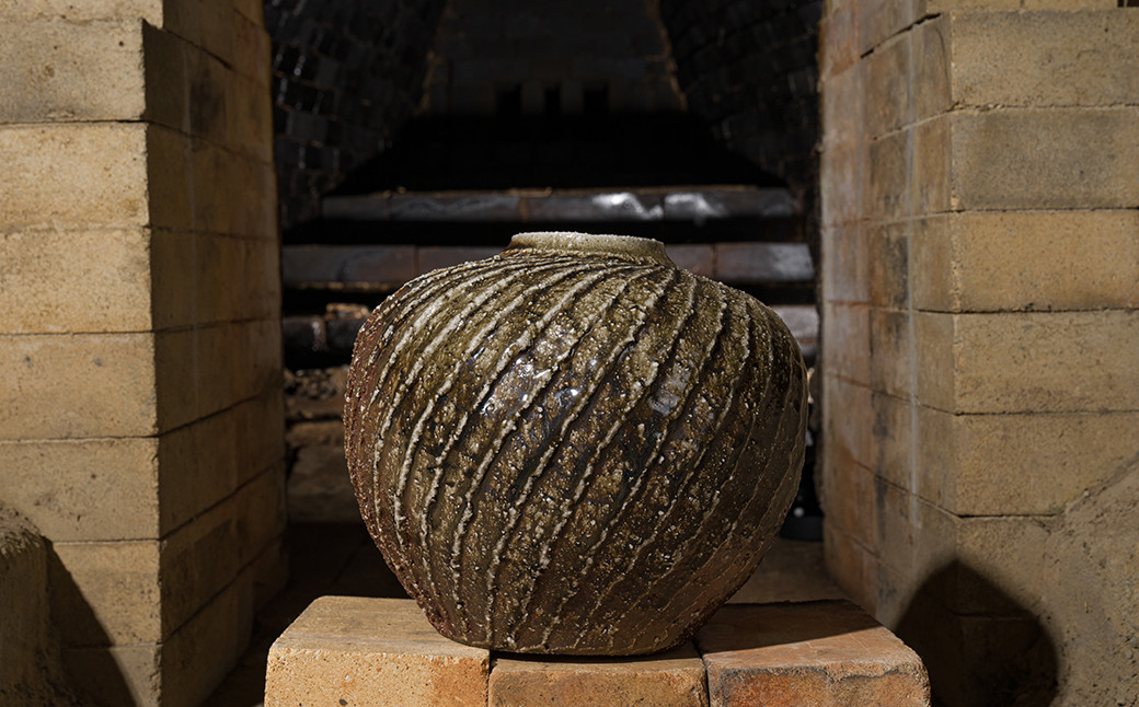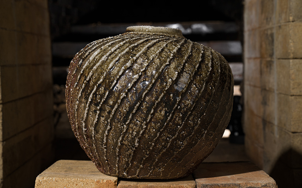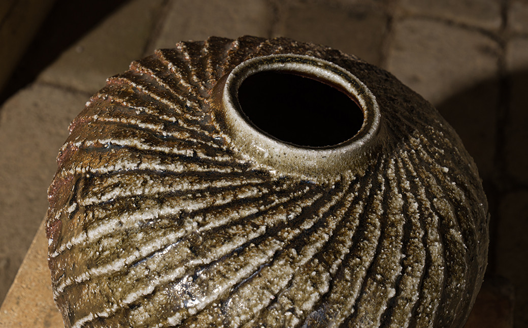 AM19 穴窯自然釉 剥ぎ面取り壺【1点物】