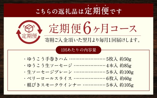 - 【全6回定期便】長崎伝統柑橘【ゆうこう】食べ比べセット / ゆうこう手巻きハム ゆうこう生ソーセージ 生ソーセージプレーン ベリーロールスライス 粗びきスモークウインナー 長崎県 長崎市