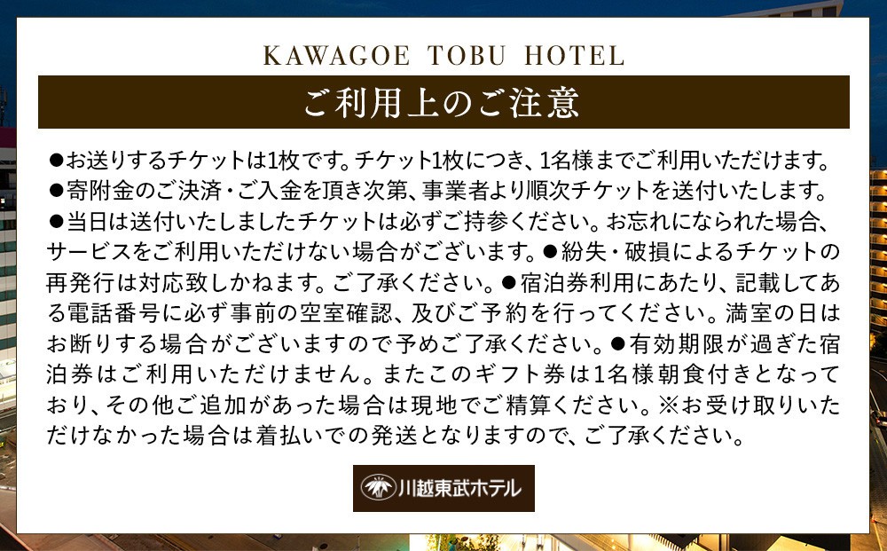 川越東武ホテル 川越市ふるさと応援寄附金返礼品 ダブルルーム宿泊券 / 宿泊券 朝食付き 和モダン 埼玉県