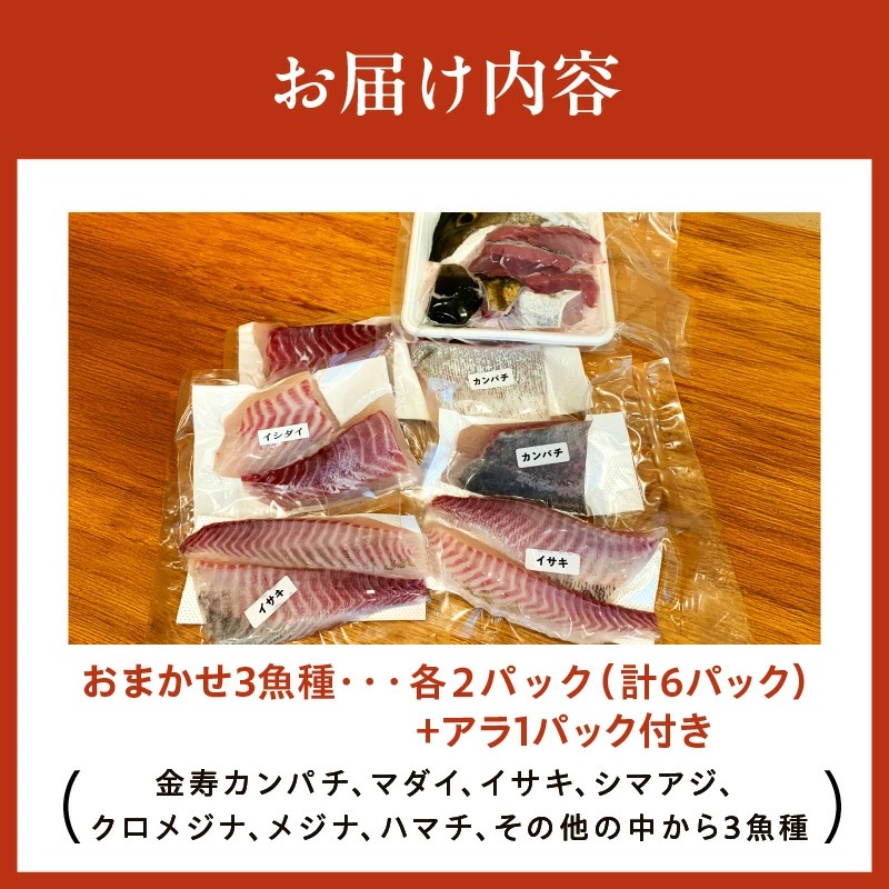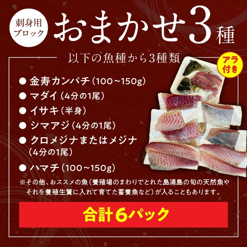 おまかせ3魚種×2P刺身用ブロックセット アラ付き N015-YB338
