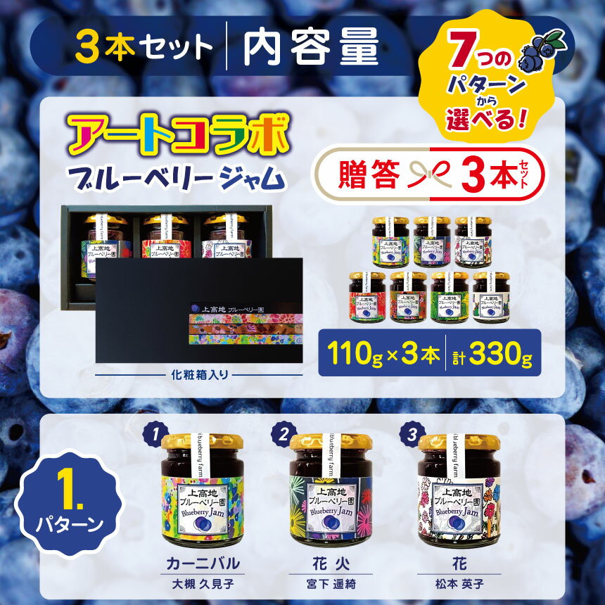【ふるさと納税】アートコラボブルーベリージャム贈答3本セット【選べるラベルの組み合わせ】│ 信州 贈答用 ブルーベリー ジャム 新鮮 加工品 甘い 美味しい 特別 松本 ふるさと納税 上高地