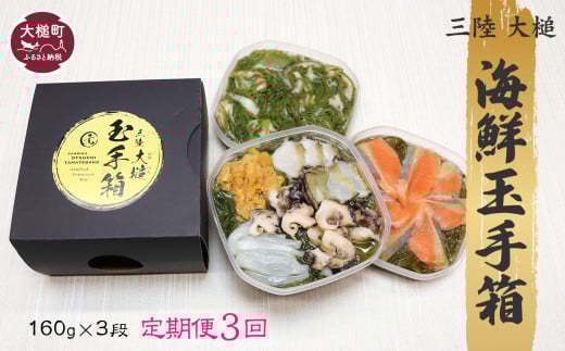- 【3ヶ月定期便】【ご贈答】 三陸 玉手箱 計480g前後 (160g前後×3段) 計3回お届け おせち 人気|冷凍 小分け 食べきり 化粧箱 熨斗 のし お取り寄せ ギフト 海宝 味付 漬 海鮮丼 どんぶり ドン 岩手 いわて iwate