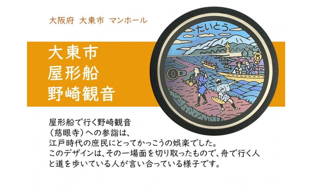 チタン製ミニチュアマンホール <大東市 屋形船 野崎観音> 272183_EC001