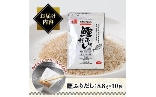 <ポスト投函でお届け>鰹ふりだし(計88g・8.8g×10袋) だしパック 出汁パック 出汁 粉 ダシ 調味料 さば サバ 鯖 椎茸 しいたけ 煮干し 鰯 イワシ 鰹 鰹節 かつお節 昆布 こんぶ 味噌汁 鍋 個包装 小分け 常温 常温保存【ksg1589】【宝山九州】