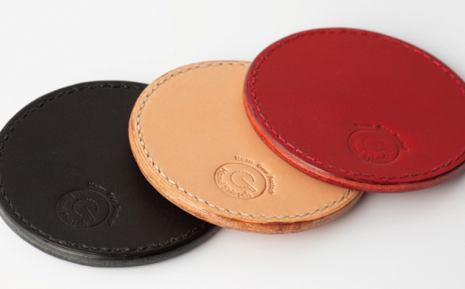 【レッド】本格レザー コースター【kazu gee factory】[OBG002-4]