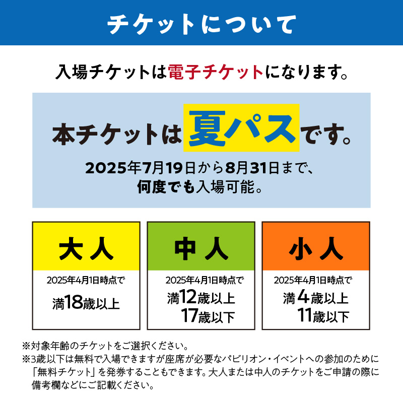 - 【夏パス】2025年日本国際博覧会入場チケット 大阪・関西万博(中人1名分)【103D-012】