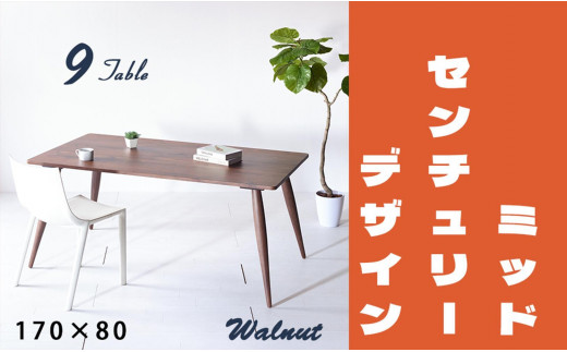 【北欧デザイン】ナインテーブル 170 ウォールナット 無垢材 国産 ミッドセンチュリー ダイニングテーブル 大川家具