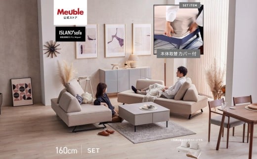 【本体取替カバー(同色)セット】 ミゲル ソファ 160cm 3人掛け スモークアイボリー【モーブル】【大川家具】