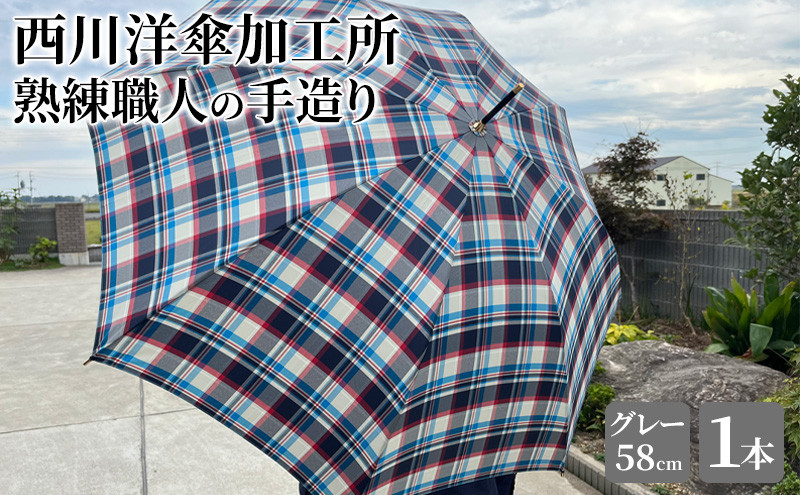 【 かさ 】雨傘 格子柄 駒取り 58cm[グリーン](共袋付)男女共用 1本
