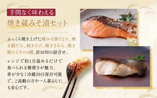 レンジ 1分 西京漬け 宝船 焼き蔵みそ漬 10切入[GY-10] 京都老舗 一の傳 漬け 魚 詰め合わせ 送料無料 個包装 レンジ 簡単調理 西京漬 西京焼き 銀だら さわら 銀ひらす さけ 京都市 お取り寄せ グルメ ギフト ギフトセット お中元 お歳暮 贈り物 贈答 内祝い 漬け魚 味噌漬け 加工品 焼き上げ済み 着色料・保存料・うま味調味料 無添加 魚介 海鮮 京都一の傳