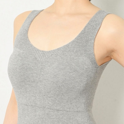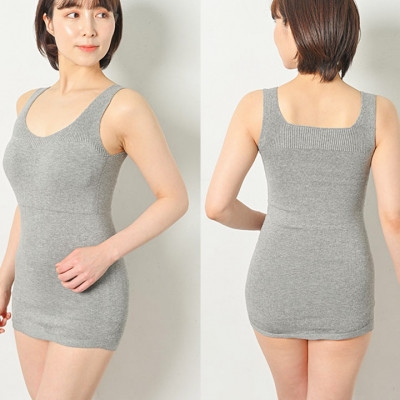 日本製 オーガニックコットン ゆったりキャミ (パット付) 無縫製 グレー (6671-S7359)【1324278】