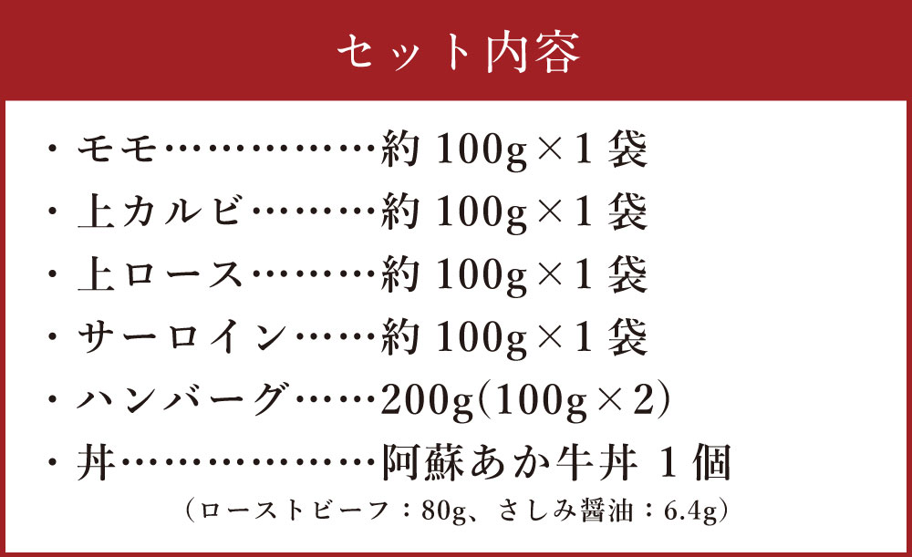 【ふるさと納税】阿蘇あか牛満喫セット モモ・上カルビ・上ロース・サーロイン・ハンバーグ・丼 計約680g 牛肉 お肉 赤身 サシ 霜降り ローストビーフ さしみ醤油 詰め合わせ プレゼント 贈り物 冷凍 熊本県産 国産 熊本県 湯前町 送料無料