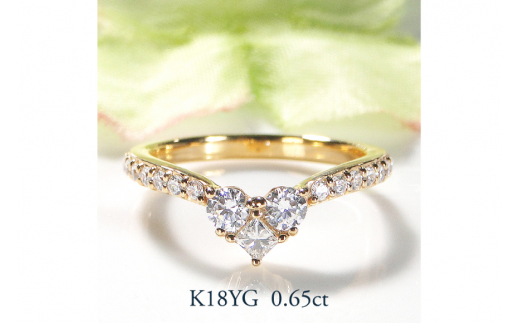 - 9.5号 指輪 K18YG イエローゴールド【0.65ct】 ダイヤモンド プリンセスカット ハートモチーフリング 【f250-k18yg】 [20743768-j] リング アクセサリー アクセ ジュエリー レディース V字 ティアラ
