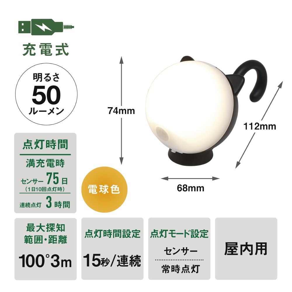- musashi WAM-051BK 充電式ねこちゃんライト[ブラック]《 センサーライト 防犯 ライト 充電式 LEDライト 玄関 照明 》【2401O10827_01】