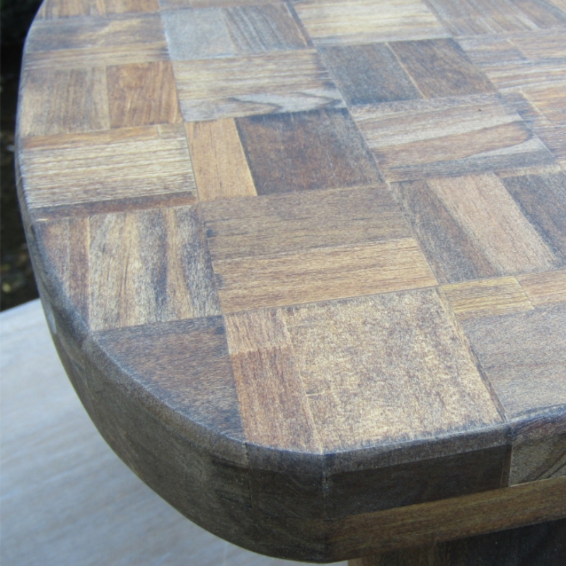 - 手作り木製 天板が市松模様の四角ちゃぶ台 脚折れ金具仕様【007B-123】