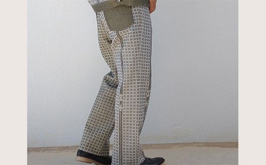 - みんさー織 総手織りパンツ(楕円ヒチガーラ グレイッシュ)Mサイズ AZ-65-1
