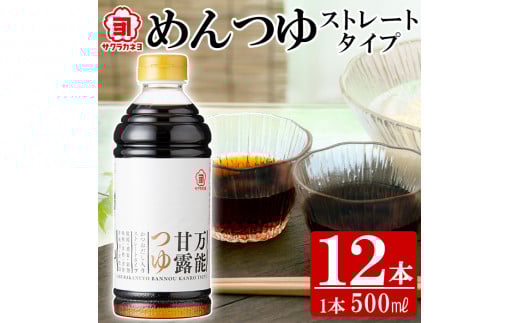 万能甘露つゆ(めんつゆ ストレート タイプ) 500ml×12本 !国産 九州産 鹿児島県産 万能調味料 めんつゆ ストレート お料理の味付けにもオススメ!【A-341H】