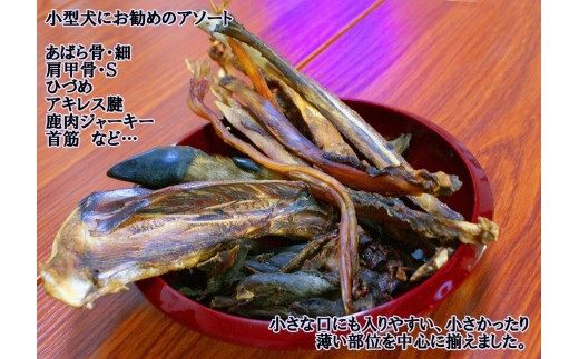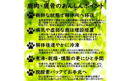 【わんこ用】阿智村で捕獲された鹿を木と水だけで加工した、無添加犬用フード/燻製鹿骨・鹿肉アソート/Mサイズ いろんな部位を少しずつピックアップしたお試しにもピッタリなアソートセット