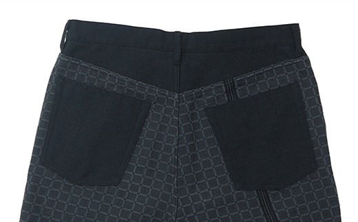 - みんさー織 総手織りパンツ(楕円ヒチガーラ ブラック)Lサイズ AZ-63-1