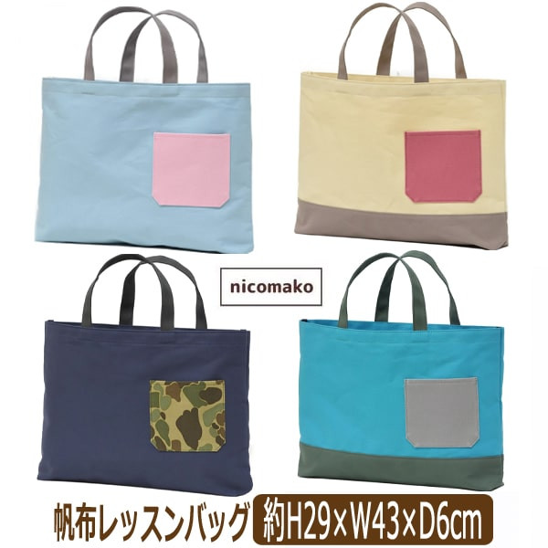 - 帆布 鞄職人の手作り レッスンバッグ 女の子 男の子 マチ付き 机にかけられる短いループ付き 全4色 子供用 トートバッグ 手提げ かばん バッグ 帆布製 日本製