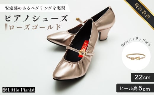 【22cm】ヒール高5cm 3WAYシリーズ最高峰ピアノシューズ アプロディーテ(ローズゴールド) | 靴 くつ シューズ レディース 日本製 特許取得 滑り止め付 負担軽減 ピアノ 専用 お洒落 オシャレ 上品 婦人 お祝い 贈り物 ギフト 茨城県 龍ケ崎市