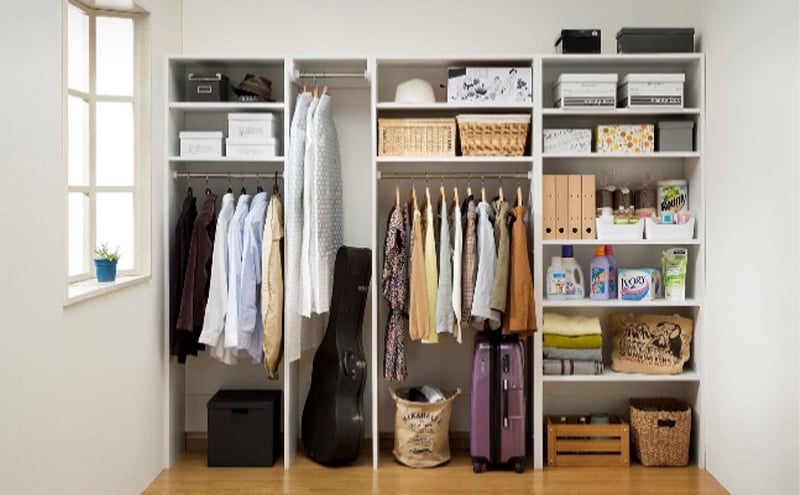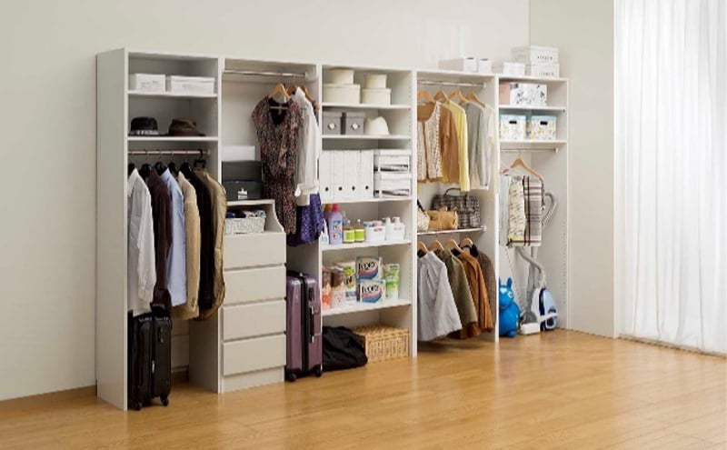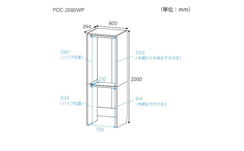 - [№5695-1414]高さ2m壁面2段ハンガーラック 幅80cmホワイト