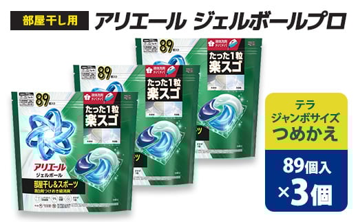 - P&G アリエールジェルボールプロ 部屋干し用 つめかえ テラジャンボサイズ(89個入り)×3個【1591381】
