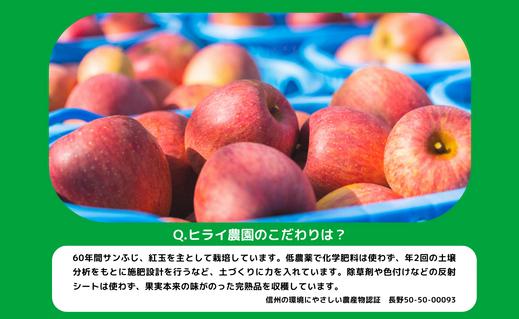 - りんご サンふじ 秀 ~ 特秀 5kg ヒライ農園 沖縄県への配送不可 2025年12月上旬頃から2025年12月下旬頃まで順次発送予定 令和7年度収穫分 信州の環境にやさしい農産物認証 減農薬栽培 長野県 飯綱町 [0350]