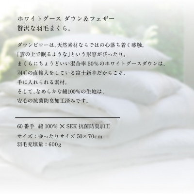 - <富士新幸謹製>グース ダウンピロー(羽毛まくら)・50×70cm|ホワイトグースダウン&フェザー【1406014】