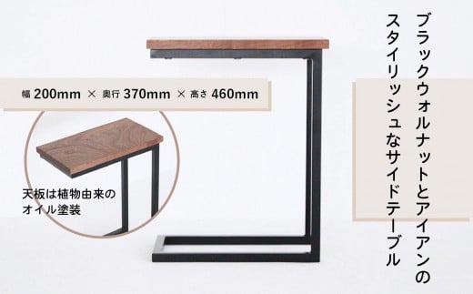 - 鉄脚の サイドテーブル | アイアンテーブルミニテーブル ナイトテーブル ローテーブル 木製 ブラックウォルナット ブラックウォールナット 天然木 家具 机 飛騨高山 ヒダコレ家具 GF030